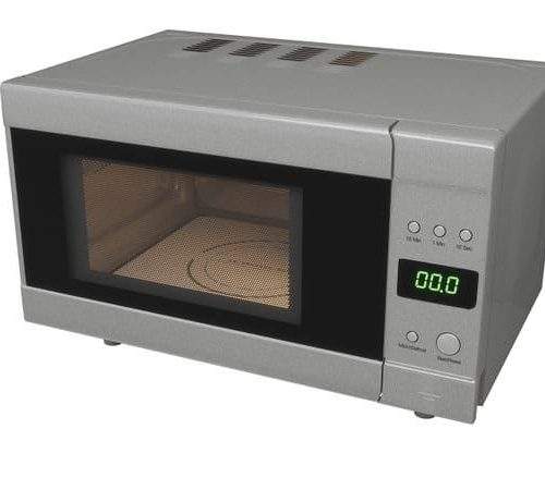 This minimalistic Black 20L flatbed microwave, is easy to clean and fitted with green LED display lights. Designed with a push button door release, a defrost setting and quick start option. As the microwave has no turning plate, users can avoid any annoying rattling noise during traveling