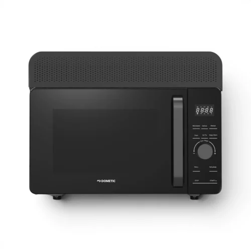 This minimalistic Black 20L flatbed microwave, is easy to clean and fitted with green LED display lights. Designed with a push button door release, a defrost setting and quick start option. As the microwave has no turning plate, users can avoid any annoying rattling noise during traveling