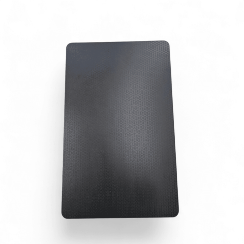one side had the embossed hexagon pattern the other side is smooth matt black.