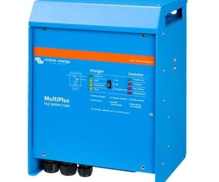 The MultiPlus Compact 12/2000/80-30, as the name suggests, is a combined inverter and charger in one elegant package. Its many features include a true sine wave inverter, adaptive charging, hybrid PowerAssist technology, plus multiple system integration features.