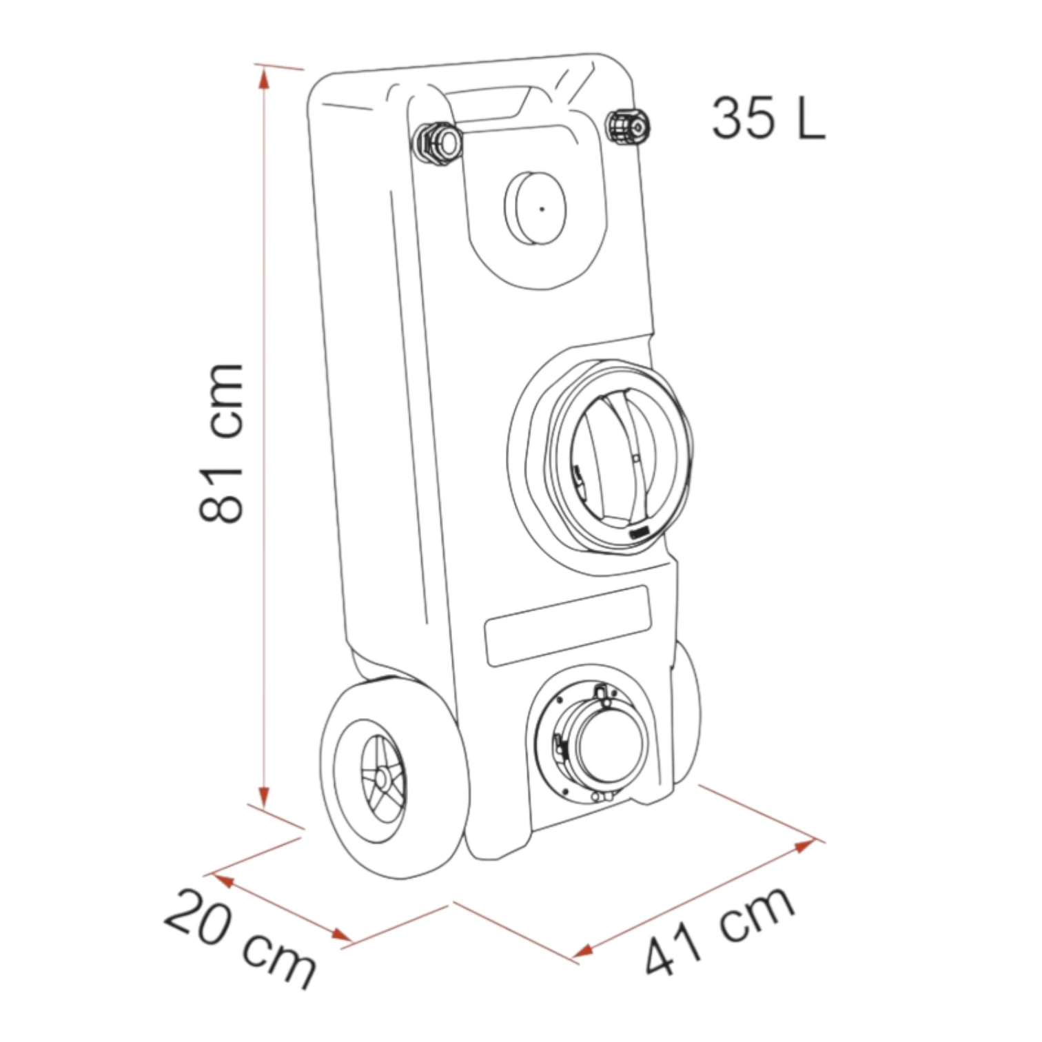 A portable 40-litre waste tank with level indicator and air release valve for quick and easy removal of you camper/ motorhome waste water.